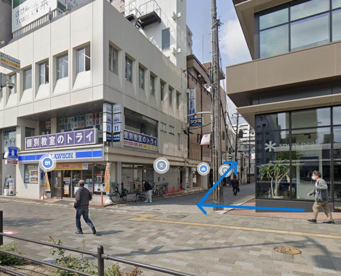③「ローソン」の手前を右折します。