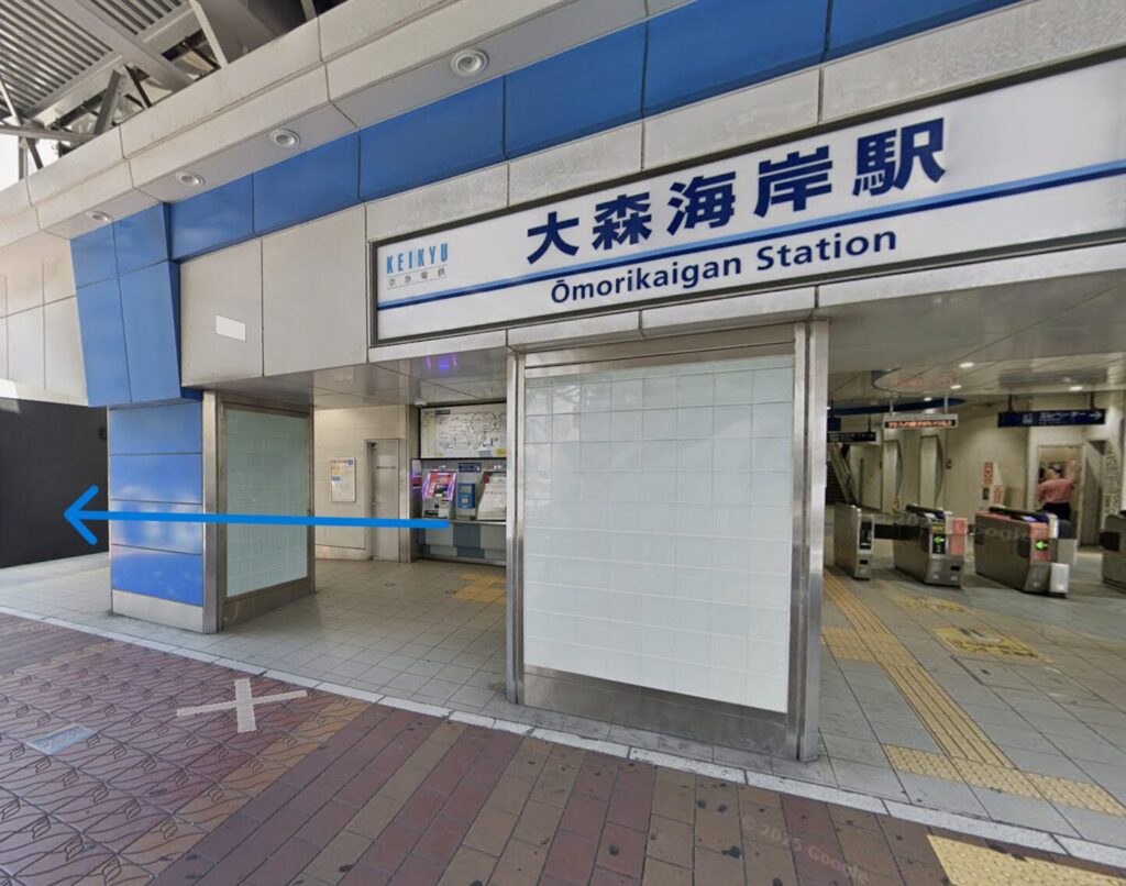 ①大森海岸駅出入口から右手方向に進みます。 13107_67a4cc-c2> |